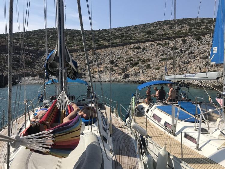 Doorgaans wordt er twee keer in de week gekookt aan boord. Op de overige dagen zoeken we regelmatig een gezellige taverne op voor een echte Griekse maaltijd (voor eigen rekening). Hoewel de bemanning voor de maaltijden zorgt, wordt er wel van je verwacht dat je meehelpt met het dekken van de tafel of het afwassen. Maar als iedereen even de handen uit de mouwen steekt, dan is dat zo gebeurd en kun je weer genieten van het weer en de wind.