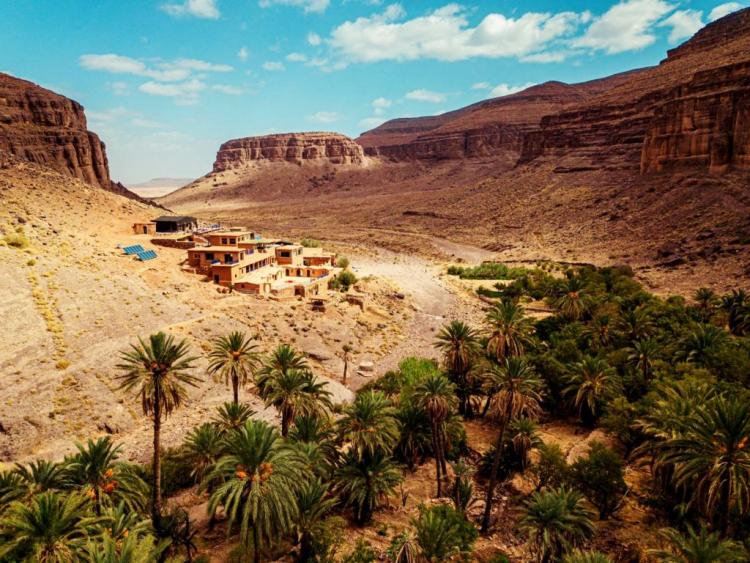 Op een prachtig afgelegen plek, naast een groene palmoase vind je EcoLodge Oued Noujoum. Je kunt hier alleen komen met 4x4 jeeps. Het uitzicht vanaf het terras is magisch. En hoewel deze eco-lodge middenin de ongerepte natuur ligt, is het toch van alle gemakken voorzien. Zoals een fijn zwembad, heerlijk eten en zelfs een lekkere spa.